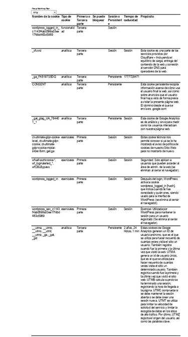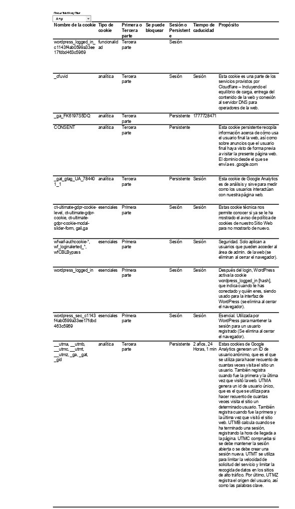 El detalle de las cookies utilizadas en esta página web es el siguiente: