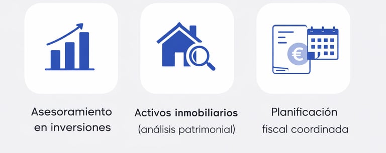 Su modelo integra en una misma lógica de trabajo la cartera financiera, la liquidez, la financiación, el patrimonio inmobiliario y la coordinación con especialistas cuando cada situación lo requiere.